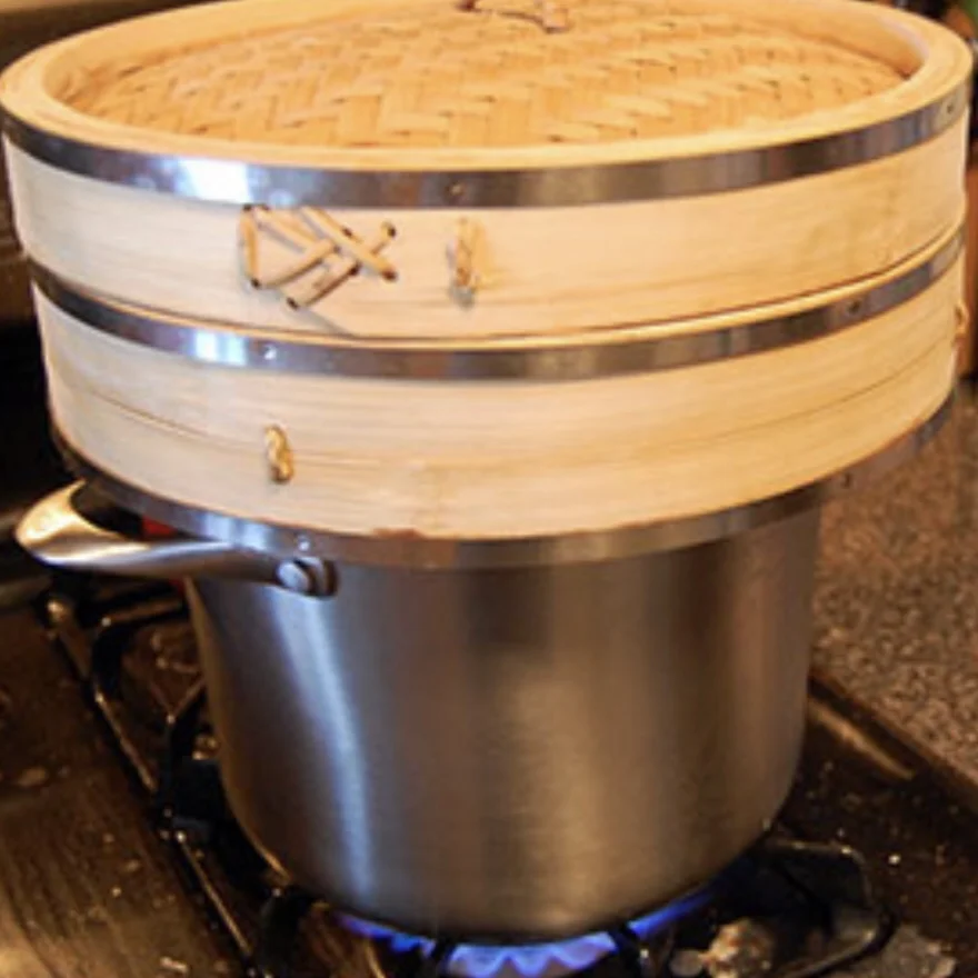 Add the beets to a pot of water, cover, and turn the heat on high. When the water reaches a rolling boil, replace the pot cover with the bamboo steamer with the carrots.