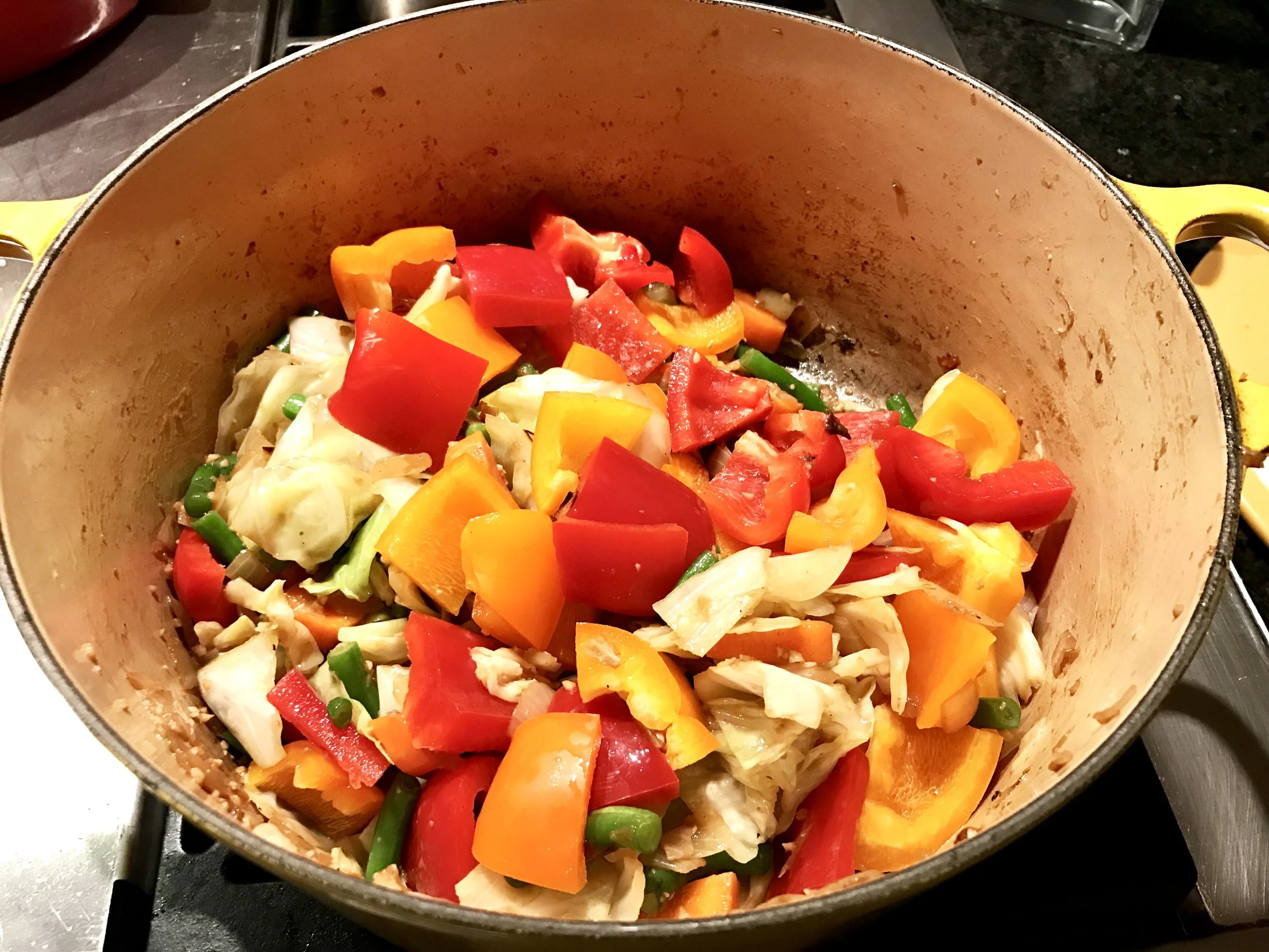 Cut and prep all your veggies BEFORE cooking, as things go quickly!